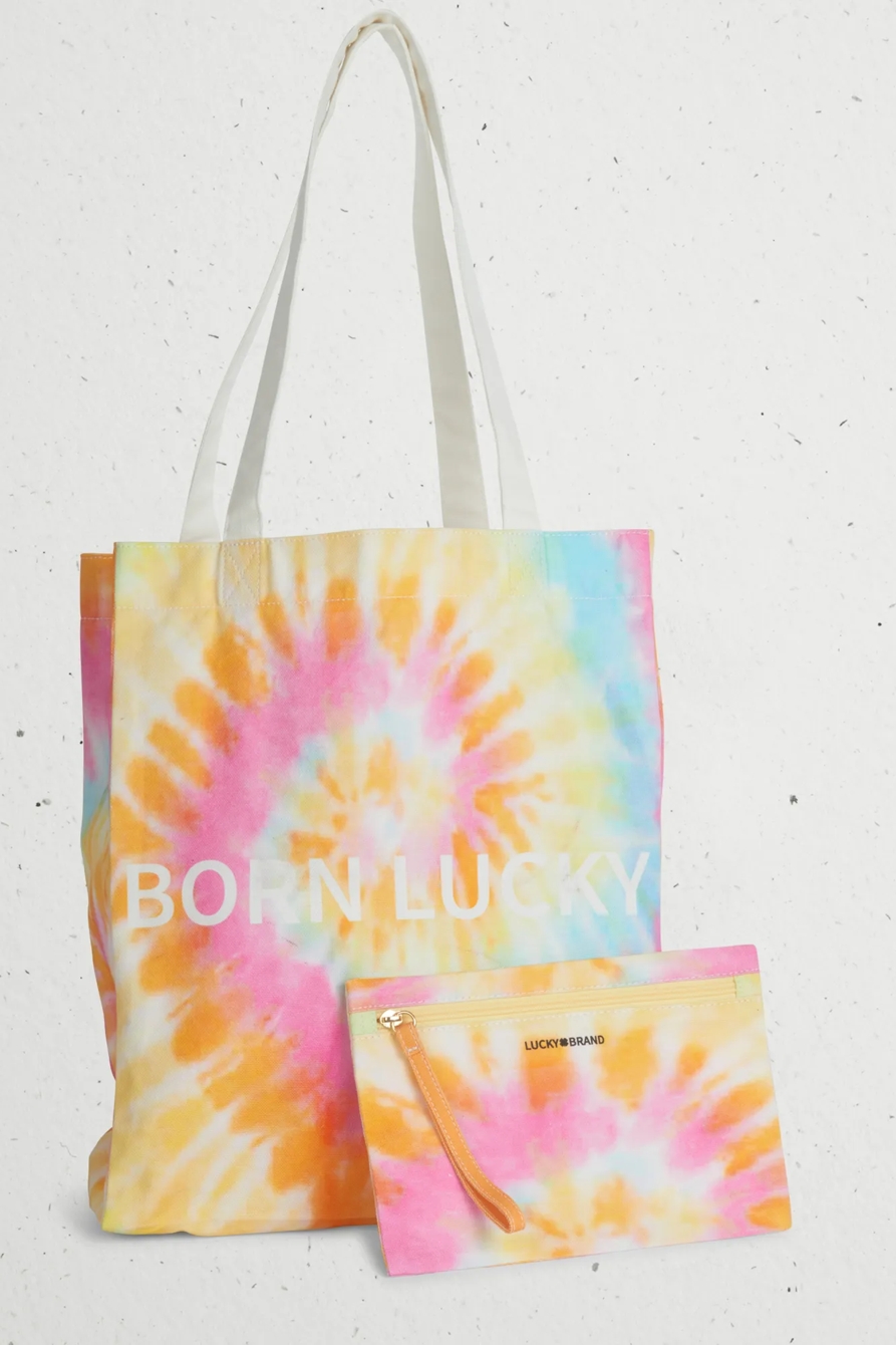 tie dye born lucky pride tote