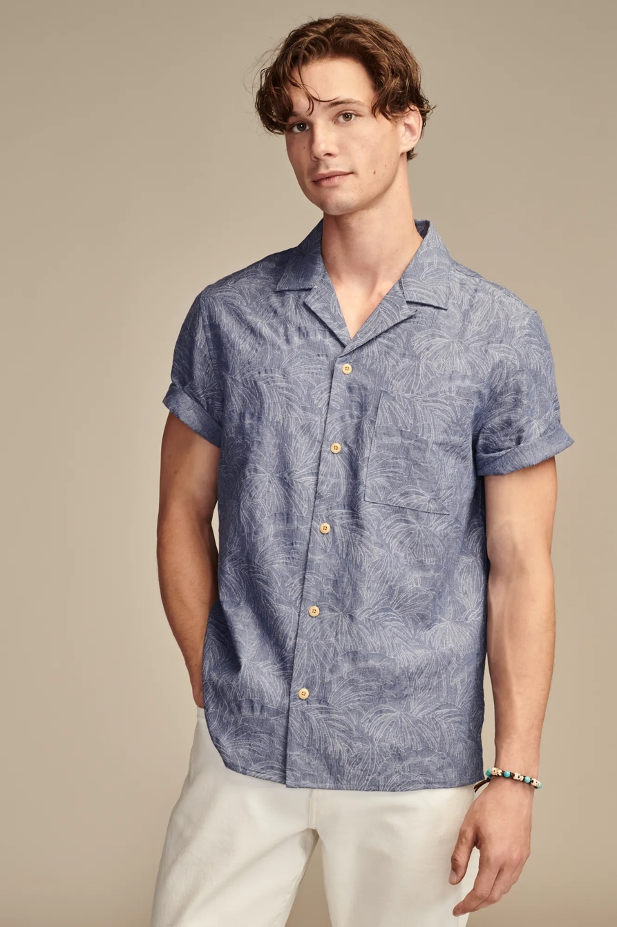 tropical leaf jacquard short sleeve camp collar shirt