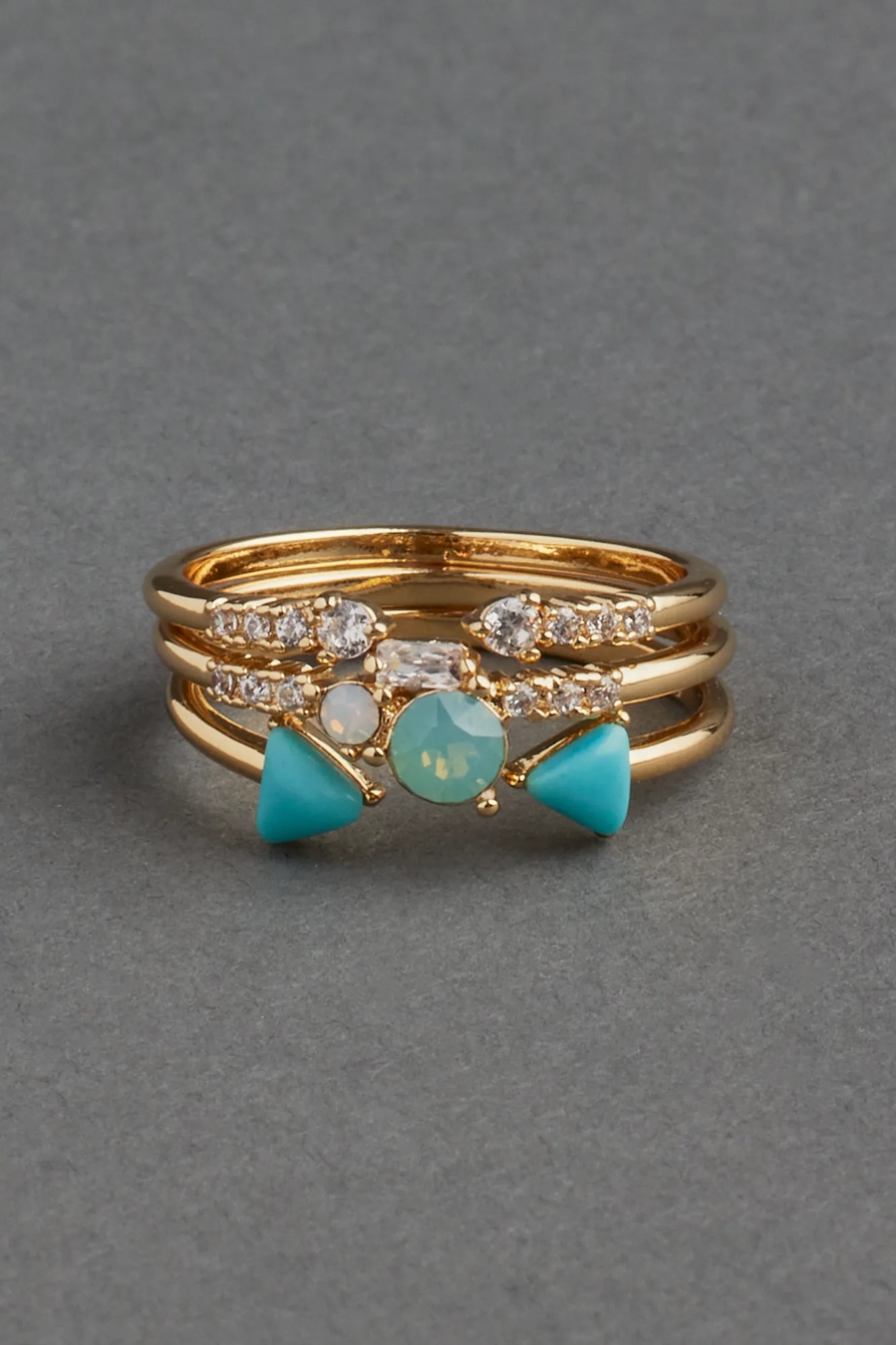 turquoise 14k gold plated ring stack