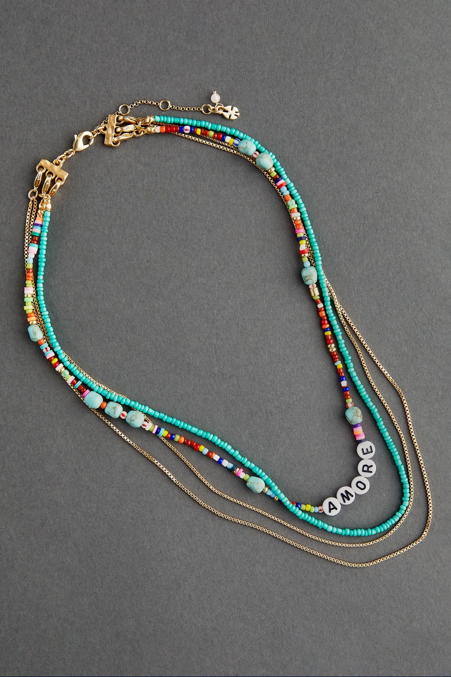 turquoise amore beaded layer necklace