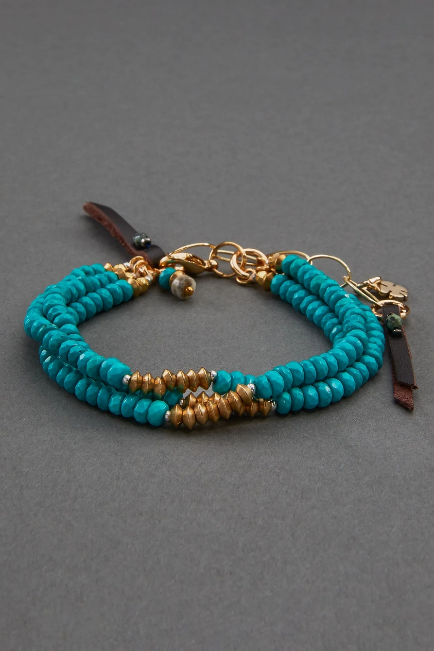 turquoise and leather beaded bracelet