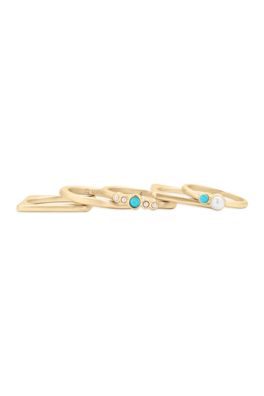 turquoise and pearl ring stack