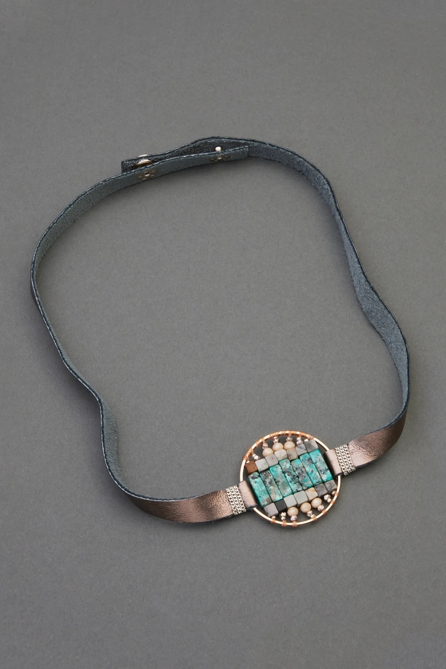 turquoise and stone leather wrap bracelet