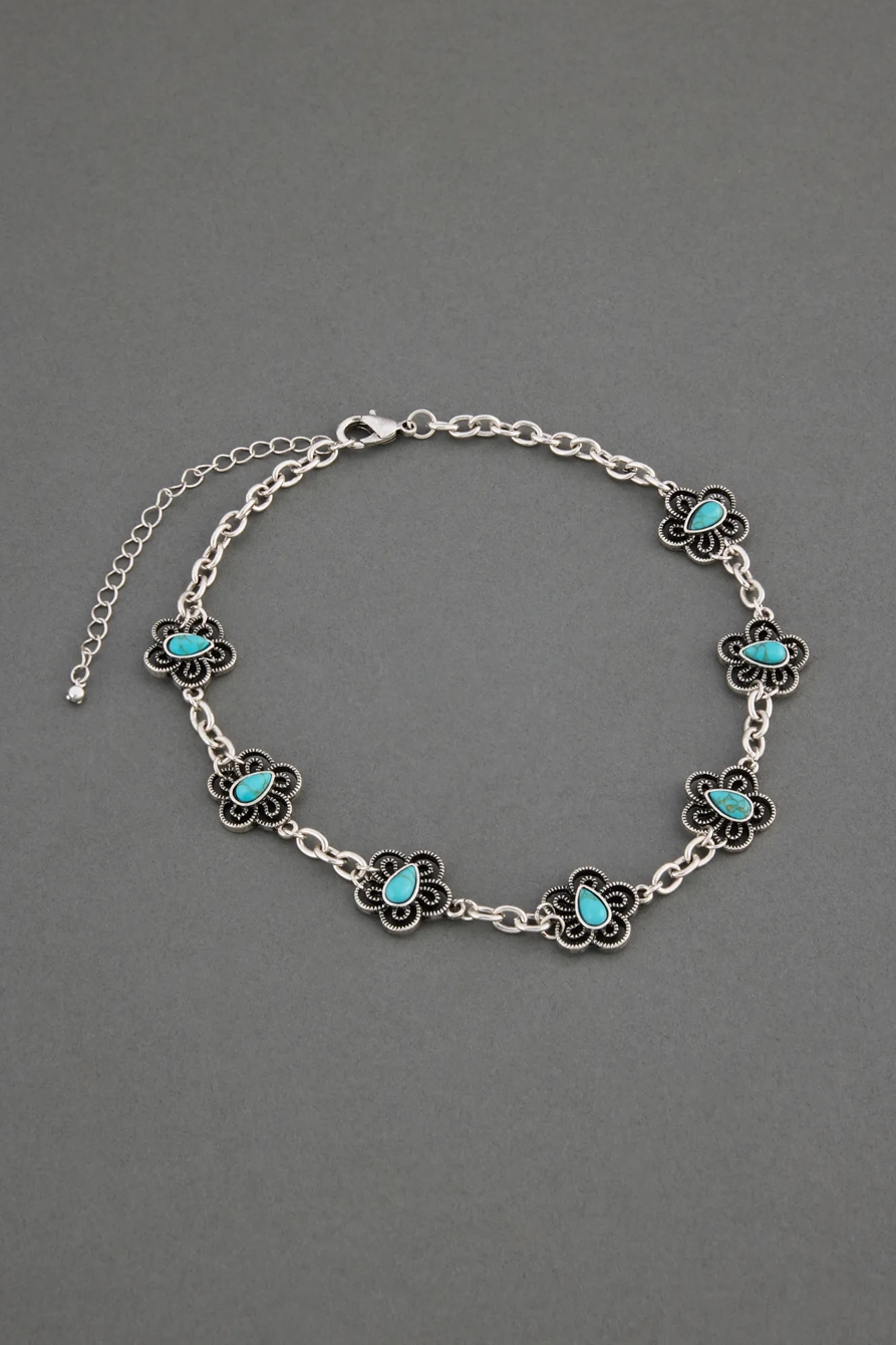 turquoise flower choker necklace