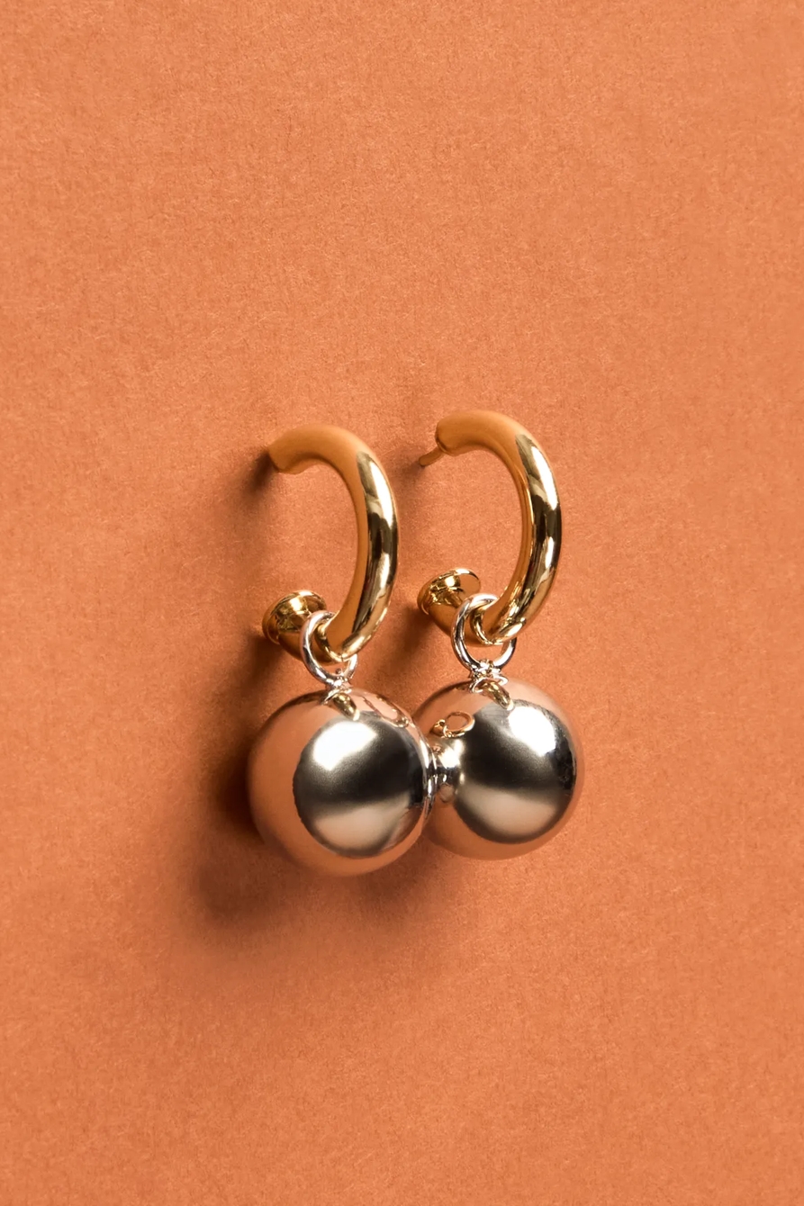 two tone ball charm hoops