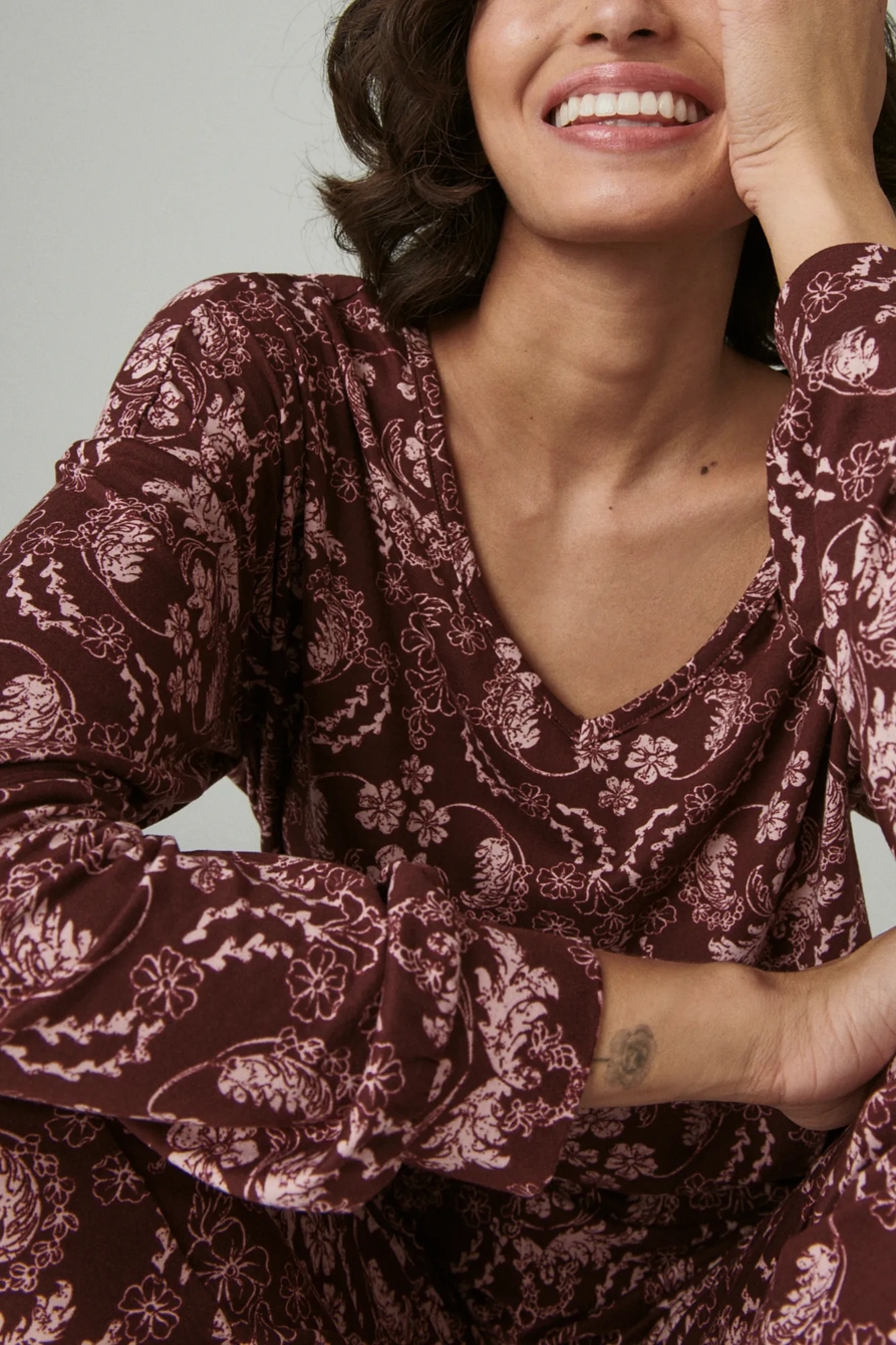 v-neck printed pullover sleep set