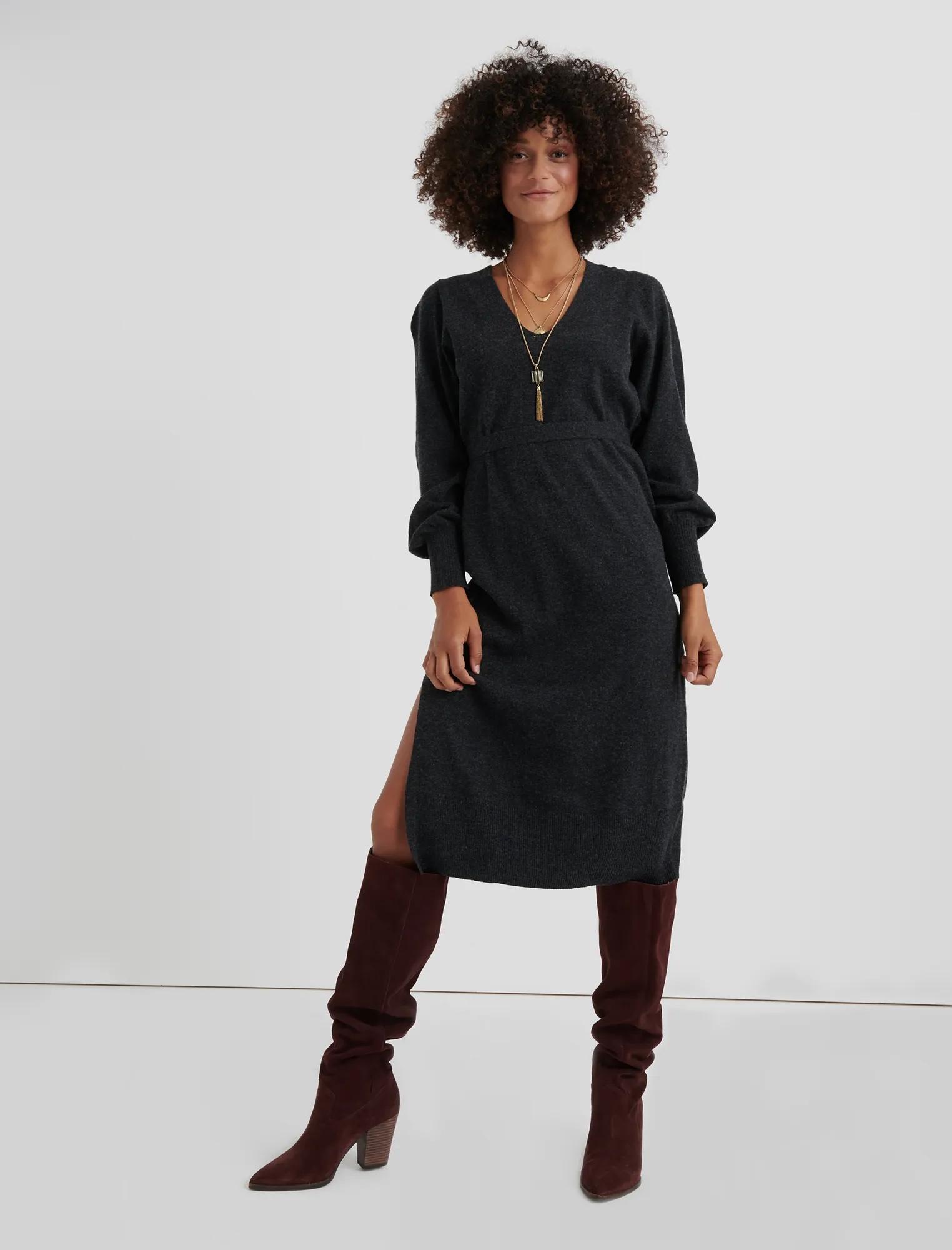 v neck sweater dress