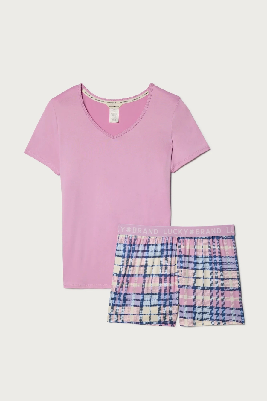 v neck tee & logo waistband short