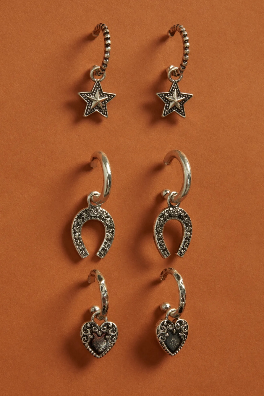 western drop hoop earring set