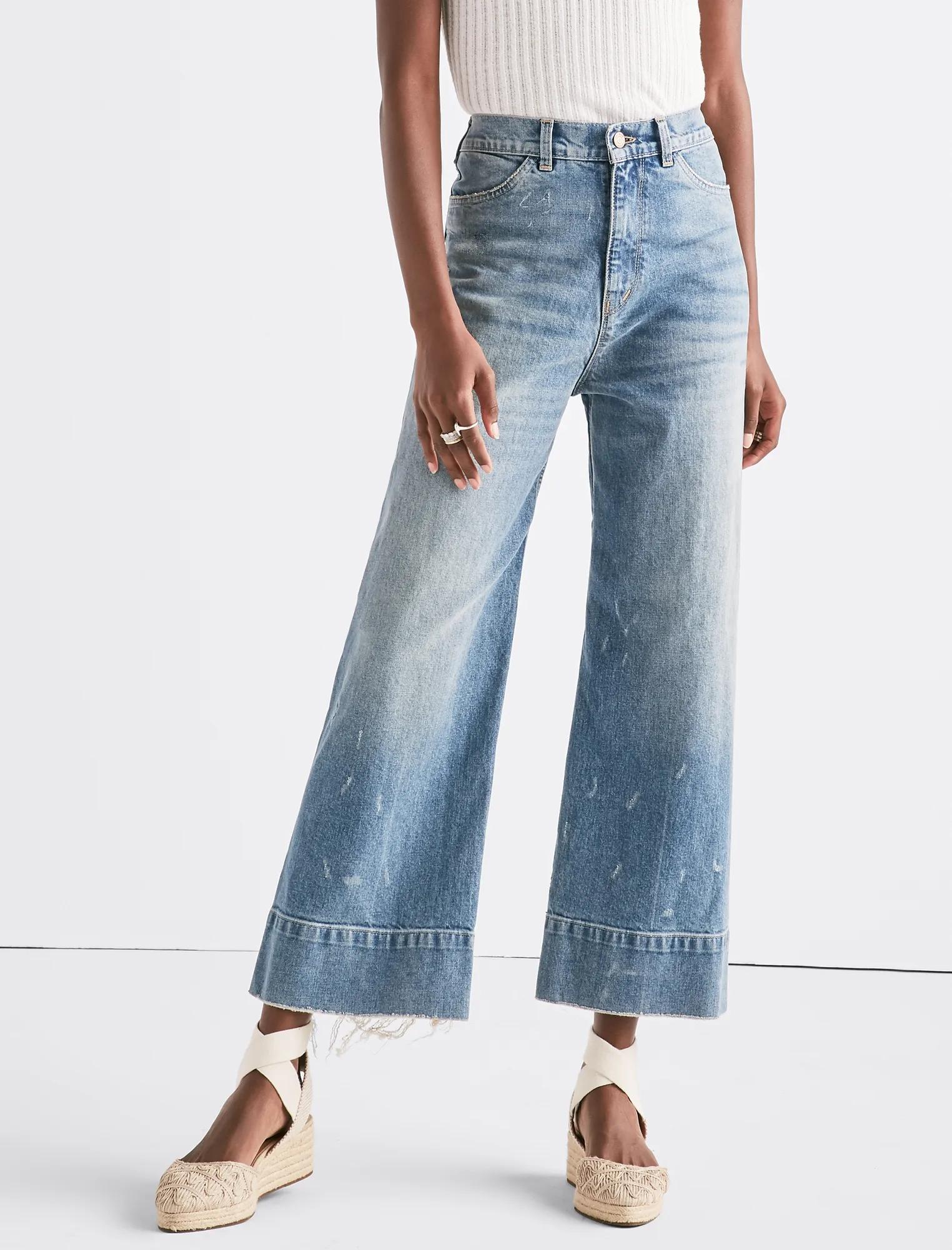 wide leg denim crop trouser in sea lane