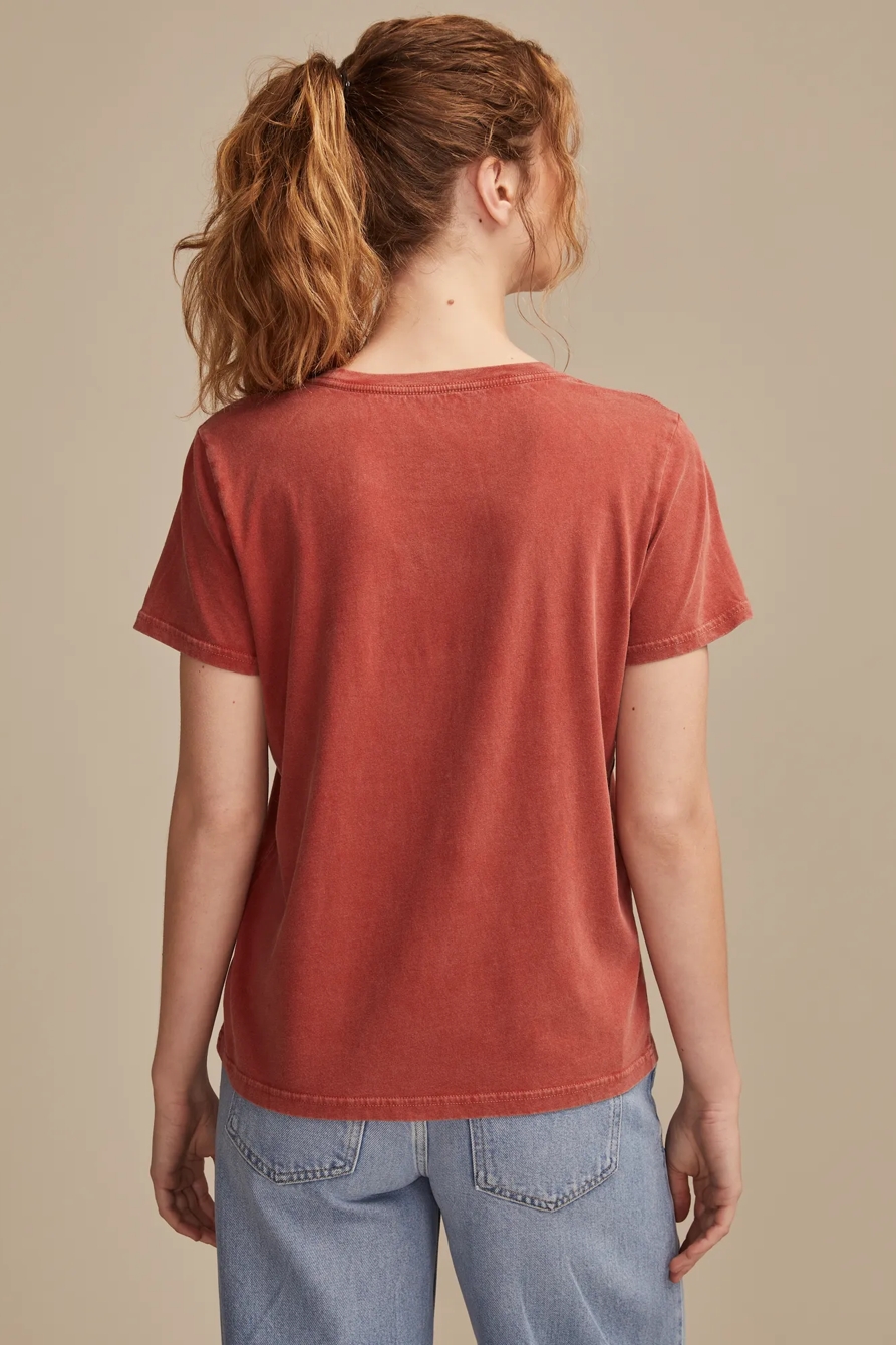 The t-shirt is an enduring example of laid back style. Have fun with your tees, and give your casual ensembles a colorful new twist with the latest collection of women's graphic t-shirts in stock at Lucky Brand. You'll reach for these inspired designs again and again, made with wearable fibers that deliver consistent comfort all day. These tops are finished with bold prints that make an unmistakable statement of style. Choose from timeless patterns such as stripes and paisleys along with tees celebrating music, sports, culture, and all the best slices of your life. Enjoy both a form-flattering fit and breezy draping effect with these thoughtfully designed t-shirts, giving you a relaxed appearance without sacrificing your personal style. Bring much needed impact to your weekend looks with the newest assortment of women's graphic tees arriving exclusively at Lucky Brand.