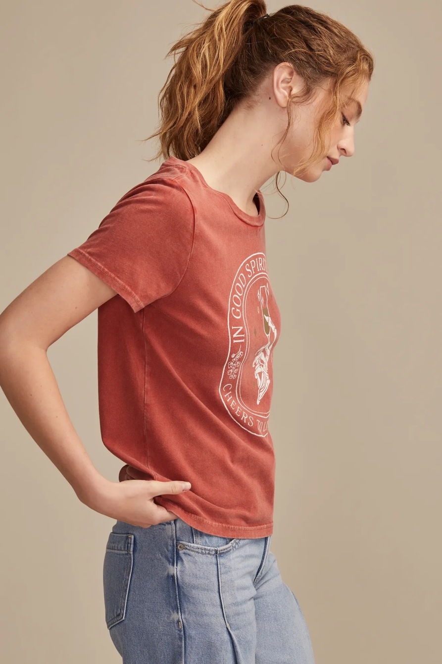 Go beyond basic casual looks with the fresh new collection of women's graphic tees now in stock at Lucky Brand. The best graphic shirts give you outstanding flexibility for everyday wear. These tees are a great choice as a primary top, but can also be layered with pieces such as vests and button-down shirts for added visual appeal. Complete these combinations with a pair of Lucky Brand jeans, and low profile canvas sneakers in a complementary shade to round out this weekend look. These tees can also accentuate polished outfits. Pair a vibrant graphic tee with a pair of chinos to make it the centerpiece of your look. Show off a peek of your personal style with a cute midi skirt and one of these shirts tucked under a cardigan. These versatile pieces can even be dressed up for a casual Friday or working lunch, worn beneath a blazer to give the ensemble a more professional feel. Top it off with a pair of heels to make a bold and confident statement. Explore the possibilities already in your closet by adding Lucky Brand graphic women's t-shirts to your regular rotation.