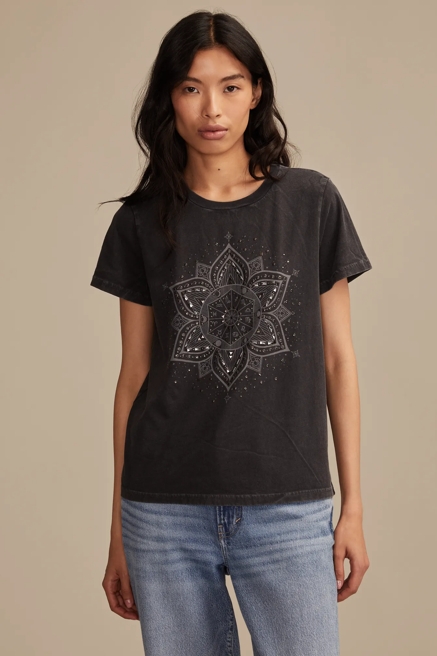 Express your cosmic connection with Lucky Brand's collection of women's spiritual graphic tees. Our carefully curated selection features mystical sun designs, celestial moon phases, and sacred symbols that speak to your inner spirituality. Each tee is crafted with soft, comfortable fabrics that feel as good as they look, making them perfect for meditation sessions, yoga classes, or simply embracing your spiritual journey in everyday life. These aren't just graphic tees – they're wearable reminders of your connection to the universe and the divine feminine energy within.
