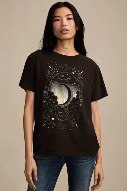 Our spiritual graphic tees celebrate the celestial bodies that guide and inspire us. From radiant sun motifs that channel positive energy and vitality to intricate moon phase designs that honor the sacred feminine cycles, each piece tells a story of cosmic wonder. The collection includes vintage-inspired sun graphics, mystical constellation patterns, and bohemian celestial artwork that captures the free-spirited essence of the Lucky Brand woman. Whether you're drawn to the power of the sun or the mystery of the moon, these tees offer a beautiful way to wear your spiritual beliefs.