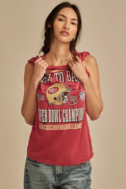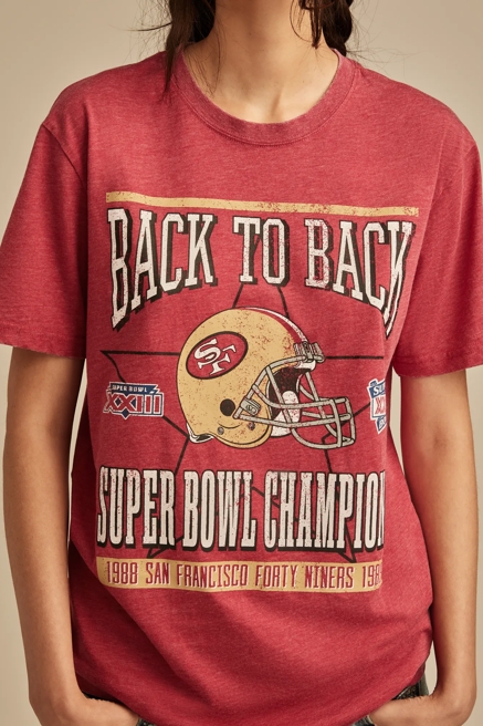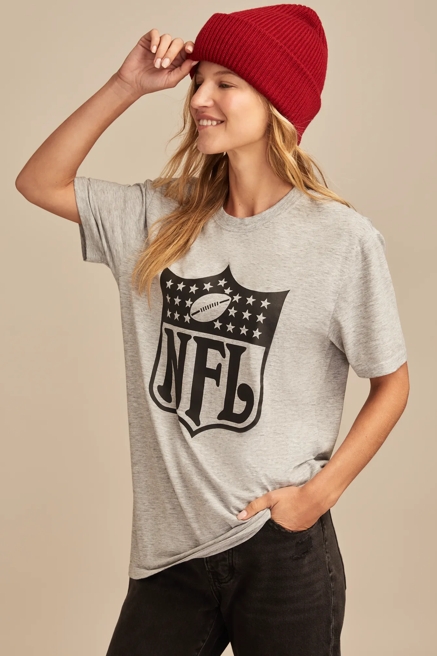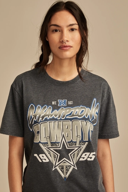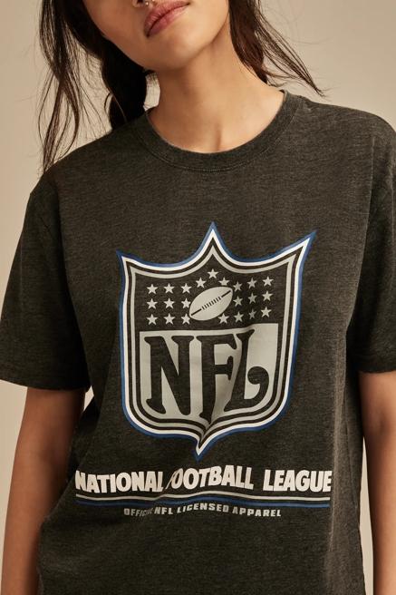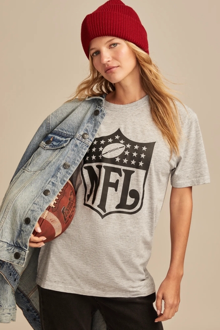 Score big with our NFL and NBA graphic tees that showcase team pride with Lucky Brand's signature bohemian twist. These aren't your typical sports tees – they're crafted with distressed details, unique washes, and feminine cuts that elevate game day style. Mix and match with your favorite denim for an effortlessly cool look that transitions from tailgate to after-party, proving that sports style and fashion-forward thinking go hand in hand.