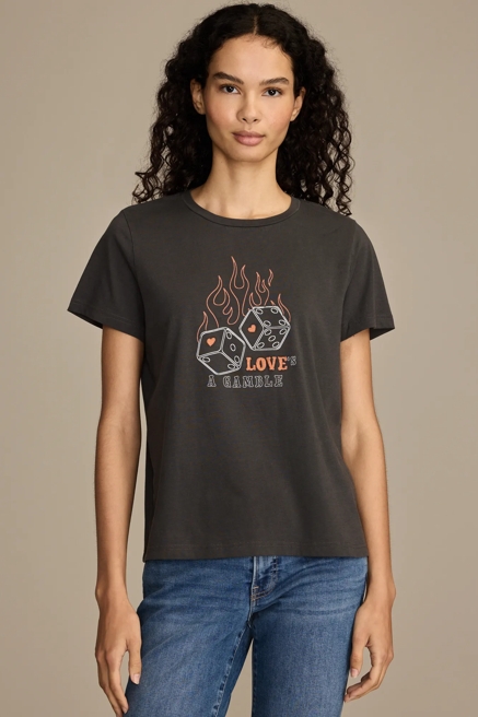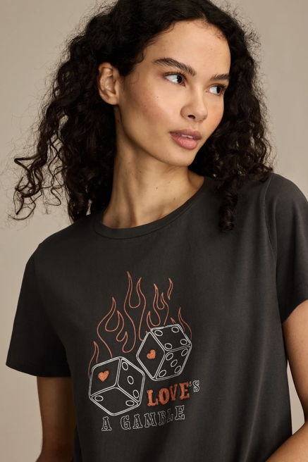 Embrace your rebellious side with Lucky Brand's collection of women's vice graphic tees that celebrate iconic beverage brands and vintage drinking culture. Our curated selection features authentic vintage-inspired designs showcasing classic beer logos, retro soda brands, and stylish cocktail graphics that capture the spirit of good times and carefree moments. Each tee is crafted from premium soft cotton blends for all-day comfort while making a bold statement about your love for nostalgic Americana and vintage advertising art.
