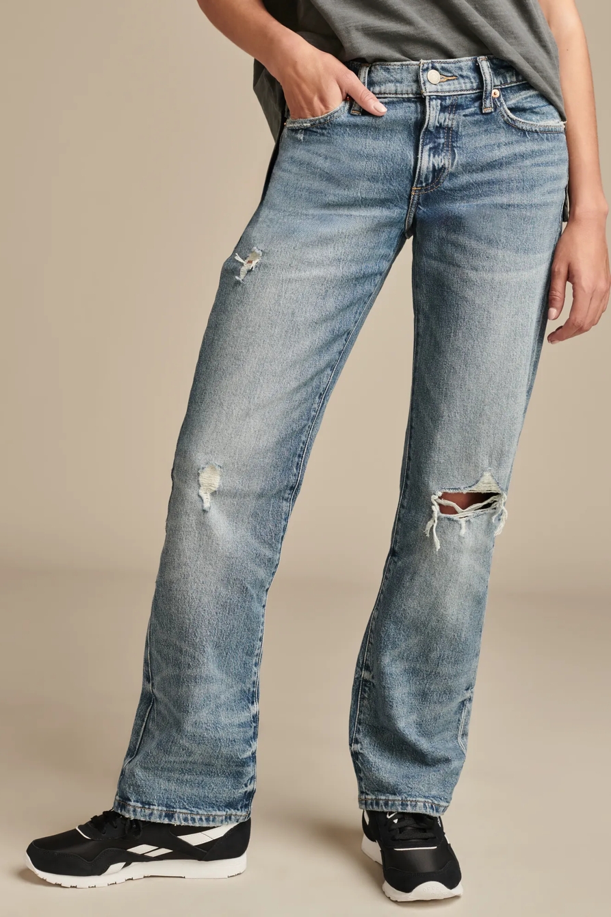 Discover the perfect foundation for any outfit with Lucky Brand's collection of distressed jeans for women. Pair a classic mid-rise jean with one of our signature graphic tees for a laid-back weekend look or add a vintage touch with a chic crop top and women's distressed jeans in a 90s high rise fit. The casual feel pairs effortlessly with your favorite sneakers and denim jacket for chill outfits with the perfect denim kick.