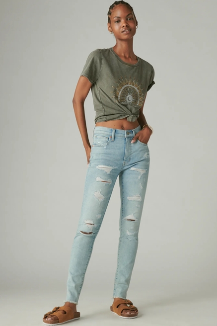 Discover the perfect foundation for any outfit with Lucky Brand's collection of distressed jeans for women. Pair a classic mid-rise jean with one of our signature graphic tees for a laid-back weekend look or add a vintage touch with a chic crop top and women's distressed jeans in a 90s high rise fit. The casual feel pairs effortlessly with your favorite sneakers and denim jacket for chill outfits with the perfect denim kick.