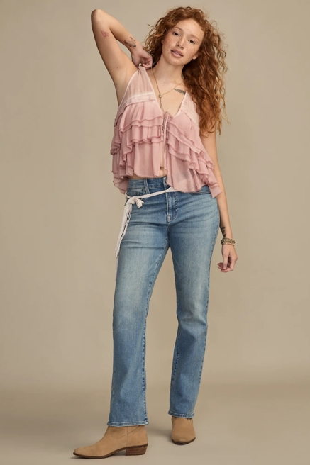 Curvy jeans are a versatile modern classic. Pairing a high-rise cut with a comfortable fit around the hips, they offer a profile that brings out the very best of your shape. The women's curvy jeans range at Lucky Brand cuts a classic silhouette using premium denim materials that blend easy-wearing comfort with real style.