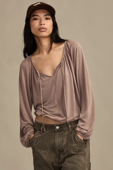 Soft Henleys and plain tees are great for a neutral layering style, while blouses add a lightly dressy look that's perfect for a night out. When there's a chill in the air, add a super-soft Lucky Brand sweater for a stylish and cozy fall and winter style.