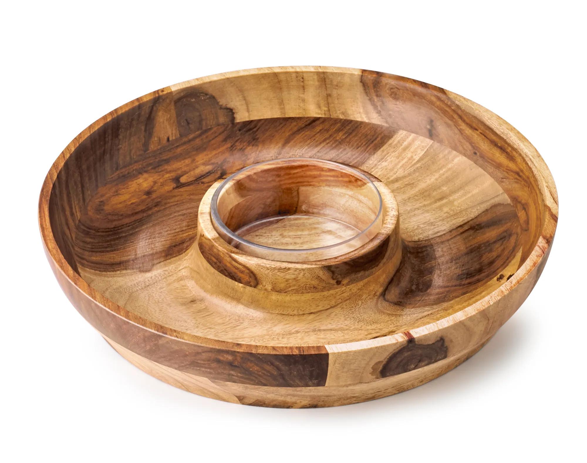 wooden chip and dip bowl
